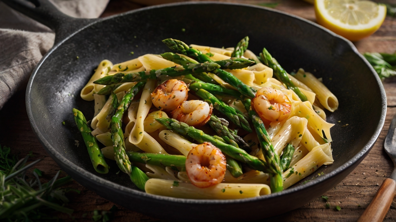 Una breve storia su pasta, asparagi e gamberetti Immagina una giornata primaverile, il sole splende…